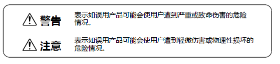 本說(shuō)明書中使用了多種符號(hào)。以下列出了使用的符號(hào)及其含義。閱讀本說(shuō)明書的正文之前請(qǐng)先了解這些信息。